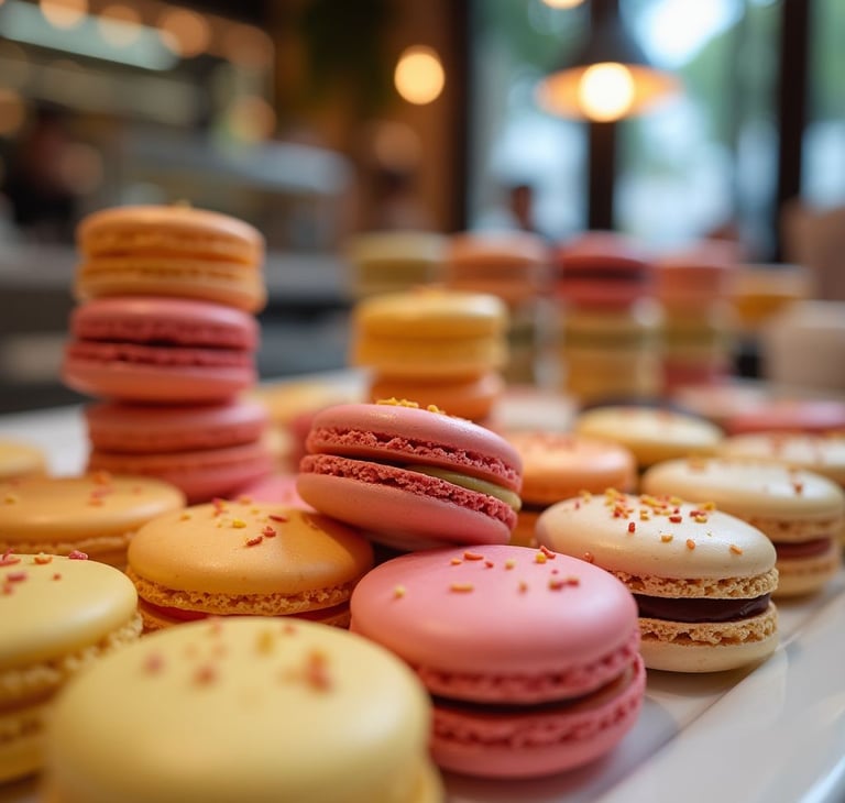 Fondue, brigadeiros e macarons feitos com ingredientes selecionados.